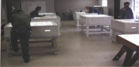 Rys. 1. Tradycyjne podświetlane stoły przydawały się w procesie koordynacji wielkich inwestycji. Dwuwymiarowe rysunki CAD służyły powszechnie jako nakładki do rozwiązywania problemów koordynacji MEPF.