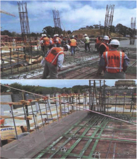 Rys. 5. BIM nie zawsze jest niezawodne. Szara, przezroczysta płyta na zdjęciu powyżej to graficzna reprezentacja dodatkowej płyty, która zostałaby wylana, gdyby nie wizja lokalna dosłownie na minutę przed tymi robotami. Nie da się zaprzeczyć, że poprawki pochłonęłyby później majątek, taka płyta bowiem i jeszcze trzy dodatkowe to strunobeton.
