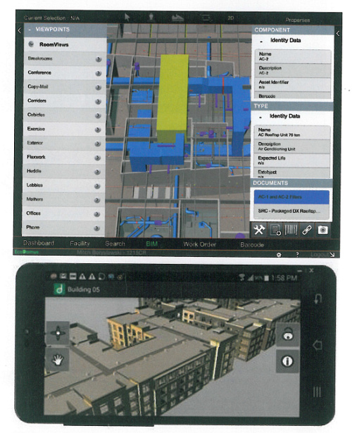 Rys. 9. Narzędziami do zarządzania obiektami są inteligentne tablety i telefony. Można w czasie rzeczywistym wyświetlać informacje o wszelkich aktywach gdziekolwiek na świecie - wystarczy po prostu palcem wskazać daną pozycję na ekranie dotykowym, który ją wyświetla w BIM.