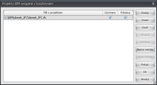 Możliwa jest jednoczesna praca na kilku projektach BIM. Skutkuje to założeniem kilku kosztorysów, ale możemy również "powiązać" kilka projektów z jednym kosztorysem.