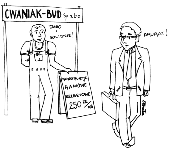 A gdyby tak się okazało po publikacji, że firma „Cwaniak-Bud” Sp. z nieograniczonym brakiem odpowiedzialności, chce wybudować konstrukcję ramową, żelbetową za 250 zł/m3, to chyba już drugi raz żaden z inwestorów, nawet „amator” nie brałby poważnie pod uwagę takiego partnera! I taka „cena” byłaby najpewniej poważnym argumentem, broniącym go przed posądzeniami o nieuczciwość!