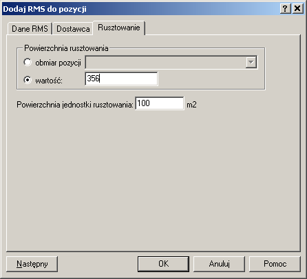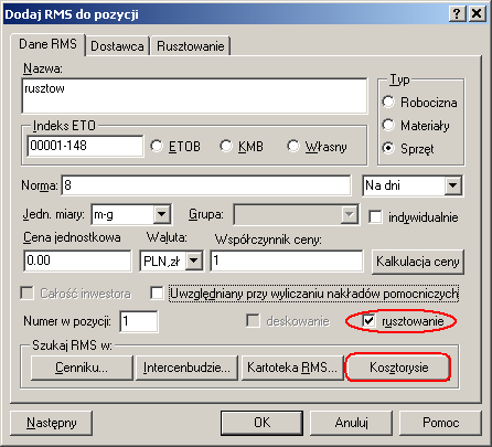 Za pomocą polecenia Wstaw sprzęt z menu RMS wywołujemy okno Dodaj RMS do pozycji: