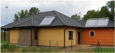 Tak zaizolowany i usytuowany korzystnie w stosunku do stron świata budynek ogrzewano w sezonach 2006/2007/2008 jedynie przy pomocy kominka z płaszczem wodnym o wydajności całkowitej 12 kW, dwóch kolektorów słonecznych o łącznej powierzchni 9 m2 oraz ciepła odzyskanego z powietrza wywiewanego (wentylacji). Kolektory i kominek zapewniały również ciepło do przygotowania ciepłej wody poprzez 150-litrowy podgrzewacz (dom zamieszkują dwie osoby).