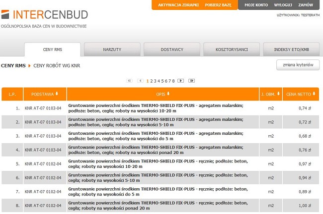Podążyłem tą ścieżką i po uzupełnieniu pól z nazwą użytkownika i hasłem, mogłem - po ponownym wybraniu importu - cieszyć się nowymi cenami. Nie zapominajmy, że aby skorzystać z baz Intercenbudu, należy mieć wykupiony abonament – podobnie zresztą, jak to ma miejsce u konkurencji. Osobiście korzystałem do tej pory z płyt CD, które otrzymuję co kwartał i z nich wczytuję ceny, ale widząc możliwość bezpośredniego ściągnięcia cen do programu z Internetu, postanowiłem sprawdzić cóż jeszcze ciekawego kryje się na stronie www.intercenbud.pl.