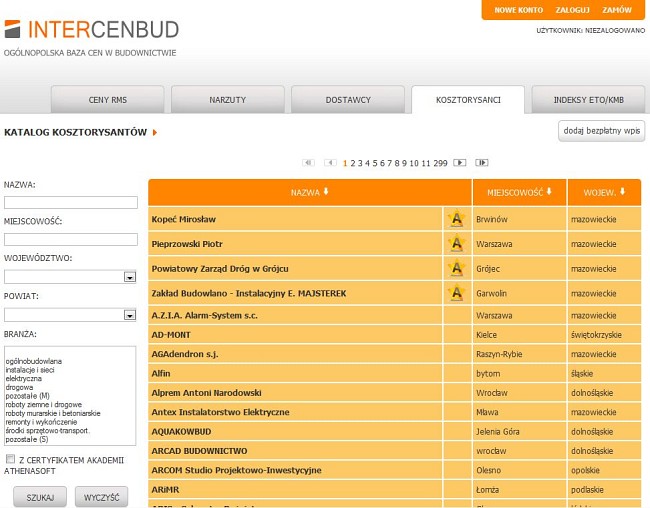 Cieszy także zakładka „Kosztorysanci”, bowiem w tym miejscu możemy bezpłatnie wpisać swoją firmę i skorzystać z darmowej reklamy. A gdybyśmy nie mogli się wyrobić z powodu nadmiaru pracy lub potrzebny byłby kosztorysant z innej branży, zawsze możemy w tym miejscu znaleźć kogoś, kto mógłby nam pomóc w pracy.