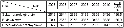 w przetwórstwie przemysłowym i w budownictwie w latach 2005 – 2010