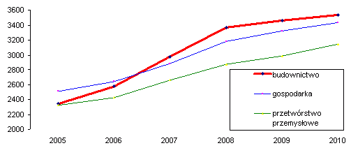 Wzrost wynagrodzenia w budownictwie w latach 2005 – 2010
