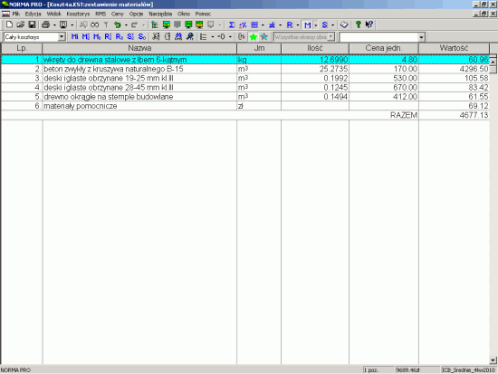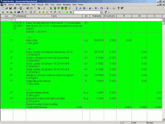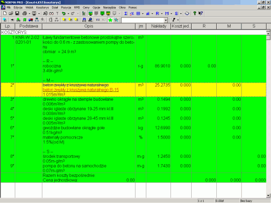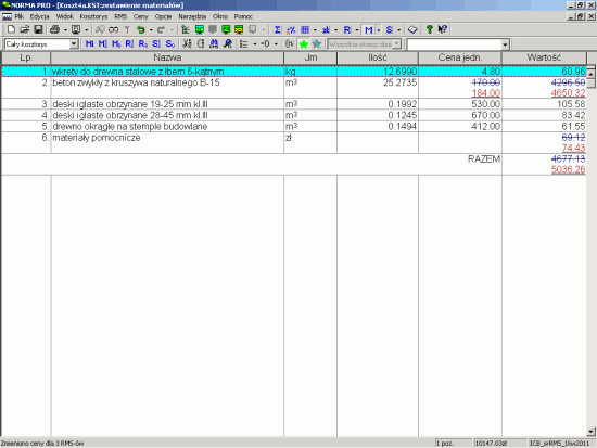 Po wprowadzeniu zmiany w cenie „betonu…” otrzymujemy wygląd przedstawiony na poniższym ekranie.