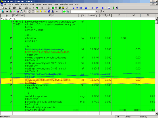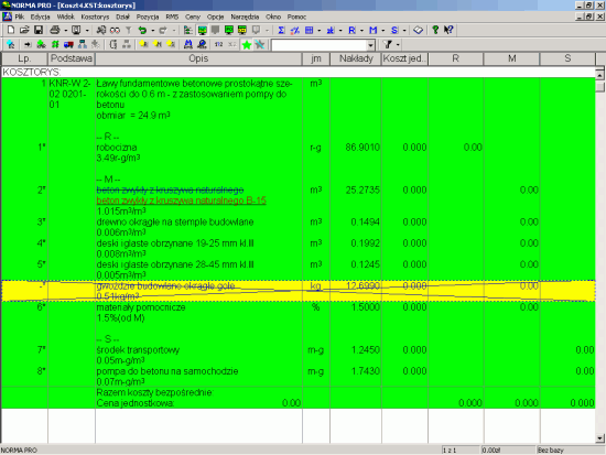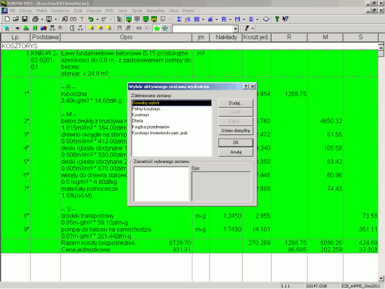 W ten sposób widzimy „starą” i „nową” cenę wraz ze zmieniającą się wartością kosztorysu, a tym samym (nie tracąc z oczu starej ceny jednostkowej) możemy dopasować nową cenę jednostkową materiału lub sprzętu do konkretnej wartości kosztorysu.