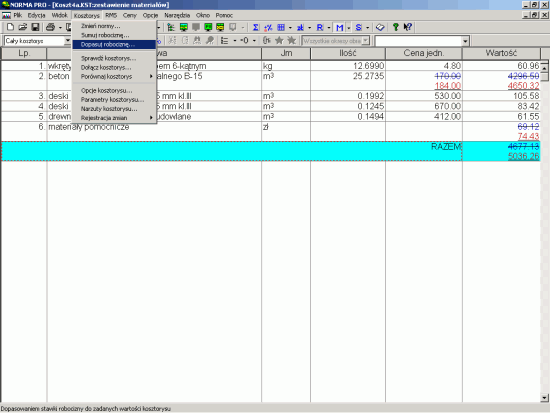 Niektórzy dla uzyskania konkretnej wartości kosztorysu korzystają z funkcji -> „Dopasuj robociznę”.
