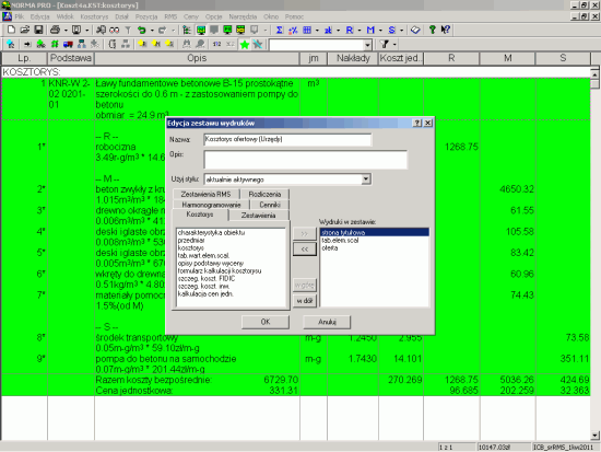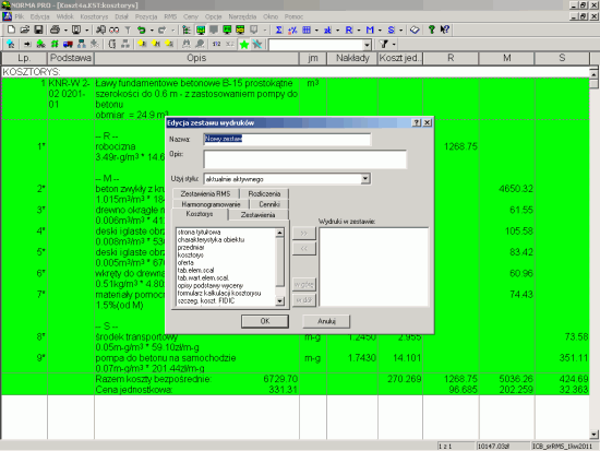 W tym miejscu mamy możliwość dodania, edycji, usunięcia zestawu wydruków kosztorysów.