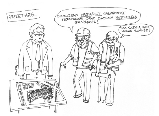 O ile oczywiście nie natrafi się na wykonawcę, który już po rozstrzygnięciu przetargu (nieograniczonego), w którym, ze względu na bardzo specjalistyczny zakres robót budowlanych (branża związana z telekomunikacją) złożono tylko 2 oferty, odczekał na wybór jego oferty (rzeczywiście była sporo tańsza), zgodził się następnie na przedłużenie terminu związania ofertą (wynikłe z uporu organu administracji architektoniczno-budowlanej, żądającego dołączenia do zgłoszenia zamiaru wykonania robót dokumentów znacznie powyżej poziomu przewidzianego w art. 30 ustawy Prawo budowlane), a tuż przed podpisaniem umowy wystąpił z nowymi cenami montowanego sprzętu, znacznie wyższymi od tych, jakie wpisał w swoją ofertę. Na pytanie zamawiającego, „jak tak można, przecież to niedopuszczalne” padła odpowiedź wręcz niesamowita - „no, przecież tamte ceny w ofercie były tylko po to, aby wygrać przetarg; no, chyba nikt poważny nie myślał, że po takich cenach będziemy to rzeczywiście realizować, nie jesteśmy Caritasem”.