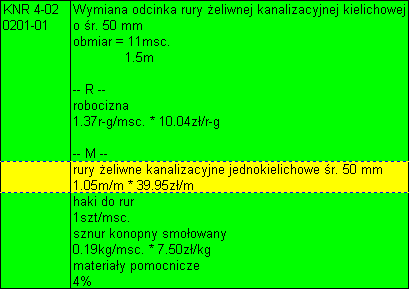 W przykładzie z Rys.1. elementem takim są „rury żeliwne kanalizacyjne jednokielichowe śr. 50 mm”. Po dwukliku pokaże się okno:
