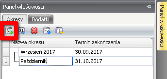 W tym celu zaznaczamy okres, za którym ma być umieszczony. Klikamy przycisk Dodaj okres i w wygenerowanym nowym wierszu, w kolumnie Nazwa okresu wpisujemy jego nazwę, zaś w kolumnie Termin zakończenia umieszczamy datę zakończenia.