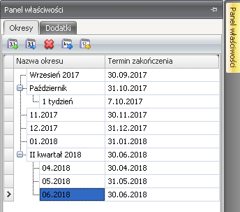 W oknie Okresy rozliczeniowe mamy do dyspozycji pięć ikonek.