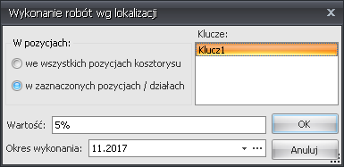 Podobnie mamy przy wyborze Wykonania robót wg klucza lokalizacji.