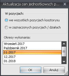 Przy wyborze tej opcji deklarujemy zakres zmienianych pozycji oraz okresy wykonania, w których ceny mają zostać zmienione.