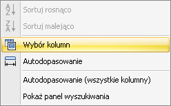 Klikając prawym klawiszem myszy na opisie kolumny, mamy możliwość ustawienia preferowanego układu tego zestawienia,