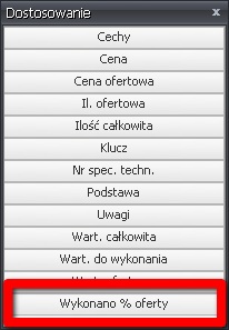 np. wstawienie kolumny "Wykonano %..." znacząco ułatwia analizę pozycji.