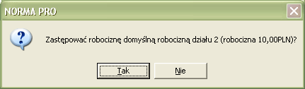 Rys.5. Pytanie o zmianę lub pozostawienie stawki robocizny w pozycji przenoszonej między działami