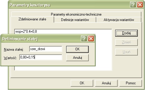 | Rys.1. Definicja stałej globalnej w kosztorysie |