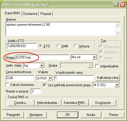 Do wersji 4.19 wprowadziliśmy możliwość wykorzystywania zdefiniowanych stałych przy modyfikowaniu norm nakładów RMS w pozycji,