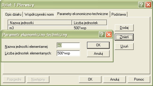 definiowaniu parametrów ekonomiczno technicznych działów i kosztorysu.