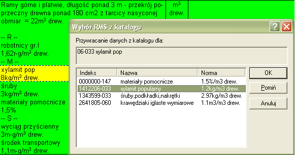 W pozycji z Rys.3. zostaną przywrócone”katalogowe” normatywy robocizny, krawędziaków, śrub i środka transportowego.