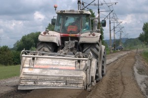 Zdjęcie 4. Wyrównywanie podtorza równiarką