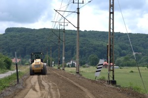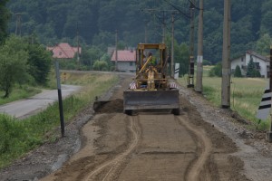 W kolejnym kroku podtorze zostało wyrównane równiarką oraz zagęszczone walcem wibracyjnym.
