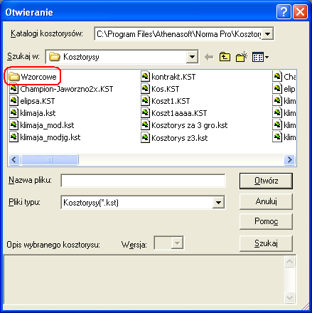 1. W folderze ..\Norma ..\Kosztorysy tworzymy folder Wzorcowe, w którym będziemy przechowywali tworzone kosztorysy-szablony.