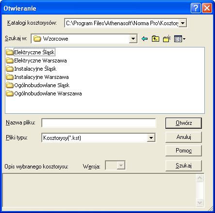 Jeśli przestrzegaliśmy powyższych zasad, to mamy na dysku wygodny zestaw szablonów do tworzenia kosztorysów na każdą okazję. Jeżeli teraz otrzymamy zlecenie od śląskiego inwestora na wykonanie kosztorysu inwestorskiego na roboty elektryczne to wczytujemy nasz kosztorys ElŚl inwestorski.kst i wykonujemy operację Plik / Zapisz jako … w folderze … / Norma … / Kosztorysy nadając mu nazwę odpowiadającą konkretnym robotom. Ta operacja ma zadanie uchronić nas przed próbą zapisania tworzonego właśnie kosztorysu pod nazwą wzorca, co mogłoby spowodować zamianę wzorca na kosztorys. Wprawdzie jeżeli zgodnie z p. 5 powyższych zasad zmieniliśmy atrybut wzorca na Tylko do odczytu, to zapis automatyczny będzie niemożliwy, ale Norma potrafi ten atrybut zmienić po zadaniu pytania: