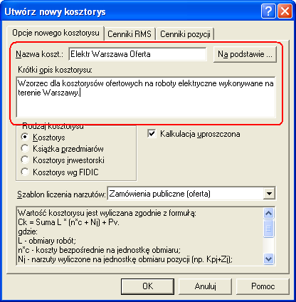 - Dobrze jest też każdemu z kosztorysów-szablonów dodać krótki opis, bo dzięki temu przy korzystaniu z nich będziemy mieli pewność, że dokonaliśmy właściwego wyboru.