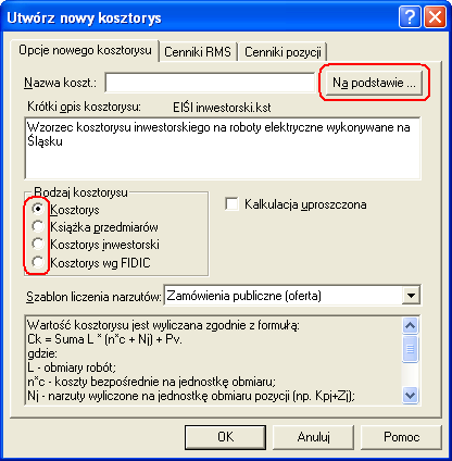 Można też zamiast wczytywania wzorca wybrać podczas tworzenia nowego kosztorysu przycisk Na podstawie….