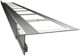 Zacznijmy od samego profilu. Przykładowy profil dedykowany takiemu układowi pokazano na rysunku 5. Nie da się tu zastosować zwykłej obróbki blacharskiej. Proszę zwrócić uwagę na kształt profilu dostosowany zarówno do systemowej maty, jak i rynien odwadniających połać. Tego typu profile umożliwiają wykonanie izolacji z masy KMB, samoprzylepnej membrany bitumicznej czy elastycznego szlamu. Papę termozgrzewalną stosuje się rzadziej, ze względu na termiczne oddziaływanie płomienia na profil podczas jej zgrzewania. Równie rzadko stosuje się grube (przynajmniej 1 mm) folie z tworzyw sztucznych i kauczuku ze względu na konieczność stosowania specjalnych uszczelek i taśm butylowych.