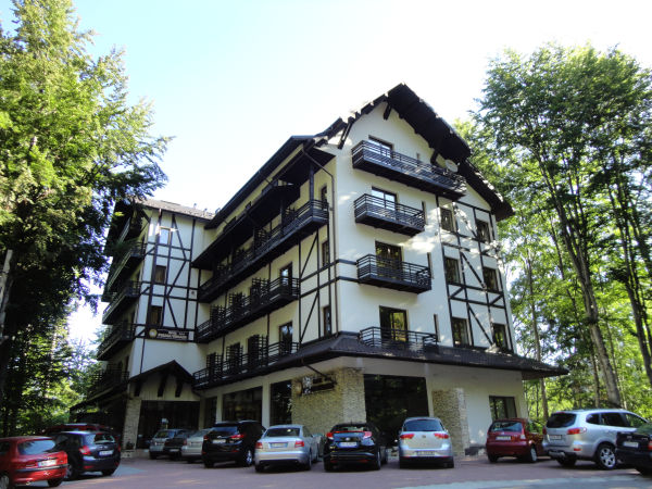 Jeszcze kolejnych ze 20 km równie krętą drogą wzdłuż brzegu jeziora i powoli zapada zmierzch, pora na nocleg. Pierwszy hotel, elegancja na poziomie 4 gwiazdek, z ceną bardziej polską niż rumuńską, czyli ok. 70 euro za dwójkę.