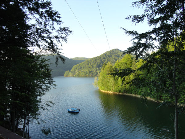 Kolejnych prawie 50 km pokonuje się błyskawicznie, w ciągu ok. półtorej godziny, a jazda polega na bezustannym kręceniu kierownicą. Powoli zmienia się roślinność, coraz więcej drzew iglastych, wreszcie przebłyskuje między nimi tafla sztucznego, blisko 900-hektarowego jeziora Vidraru. Powstało ono przez spiętrzenie tamą małego w sumie, górskiego potoku Arges i nieco przypomina nasz bieszczadzki Zalew Soliński.