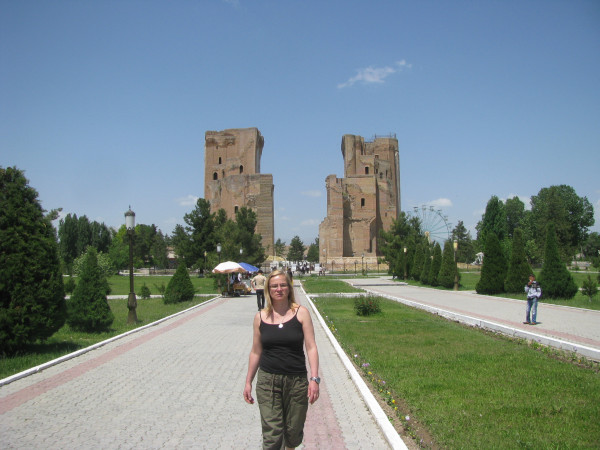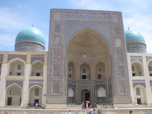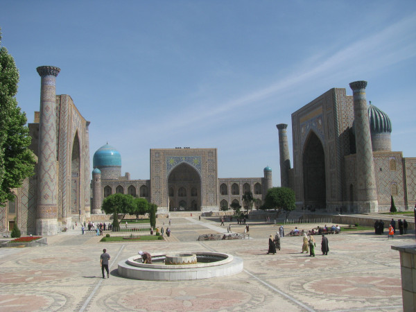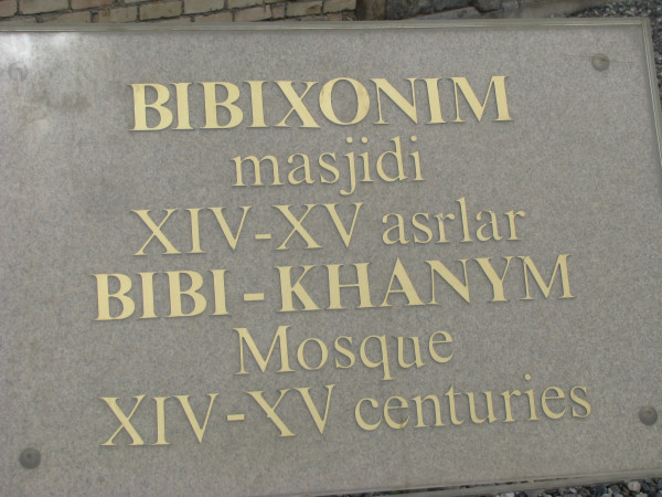Przynajmniej ze 3 dni należałoby poświęcić na chociażby pobieżne zwiedzenie zabytków Samarkandy, pełnej gigantycznych budowli pochodzących z różnych czasów, w tym z końca XIV wieku. Najbardziej znaną z nich jest meczet Bibi Chanum (fot. 4), monumentalna budowla o niespotykanej jak na tamte czasy wielkości, położona niedaleko Registanu (w tłumaczeniu – „piaszczyste miejsce”) - centralnego placu miasta, jednego z najwspanialszych zespołów architektonicznych Azji Środkowej. Budowę meczetu sfinansowano z łupów przywiezionych ze splądrowanego w 1398 roku indyjskiego Delhi, a przy prowadzeniu robót wykorzystano także „ciężkie maszyny budowlane” tj. 95 sprowadzonych z Indii słoni (innych niż te bojowe). Około 35-metrowy łuk nad wejściem, z dwoma 50-metrowymi minaretami po bokach prowadzi na wewnętrzny dziedziniec, wyłożony marmurowymi płytami, przy którym stoją przekryte mozaikowymi kopułami narożne wieże.