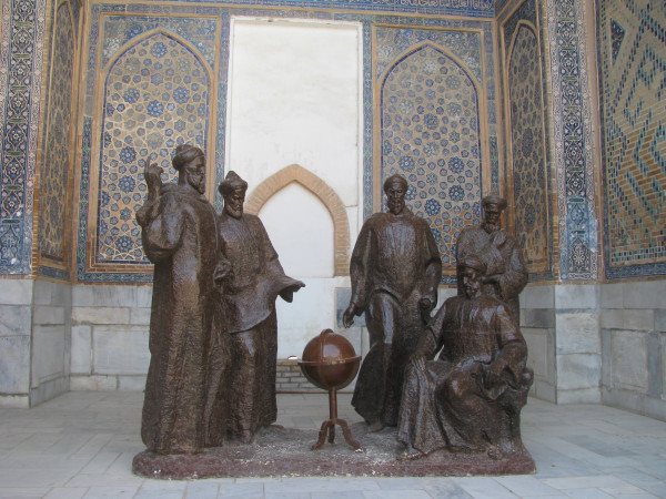 Śmiało można więc traktować Uług Bega, jako kontynuatora żyjącego 650 lat wcześniej, urodzonego w ok. 780 roku w Chiwie sławnego matematyka o krótkim imieniu Abu Abdullah Muhammad ibn Musa al-Chuwarizmi, którego pomnik stoi na placu pod murami tego miasta (fot. 10).