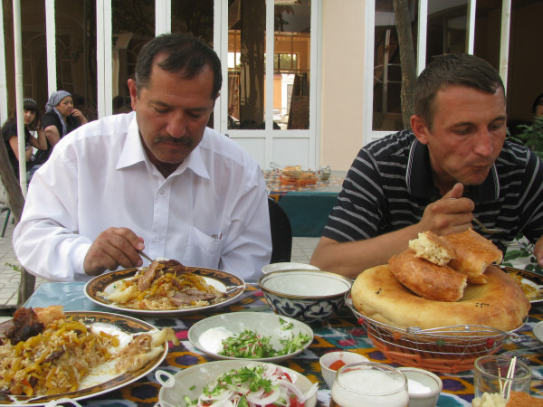 Koniecznie trzeba spróbować też miejscowych specjałów, np. doskonałego płowa (tatarski pilaw), na który samarkandzkiego przewodnika i naszego kierowcę nie trzeba było długo namawiać (fot. 17). Do tego miejscowe piwo, które (ale tylko w najlepszych restauracjach) potrafią czasami nawet podać prawidłowo schłodzone.