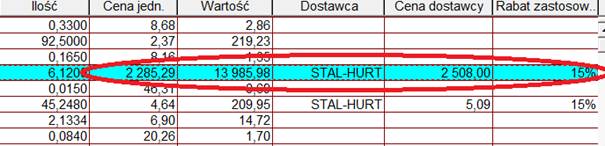 Tym sposobem wpisana wcześniej cena zostanie pomniejszona o dany rabat i informacje o tym pojawią się w naszym zestawieniu materiałów.