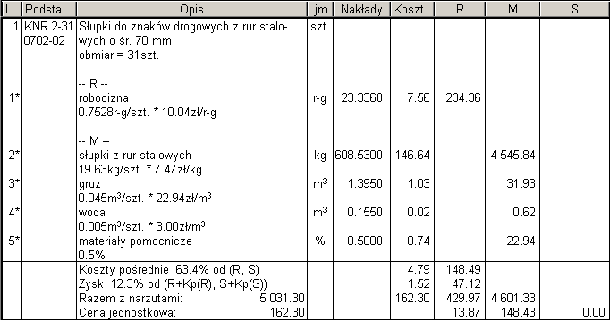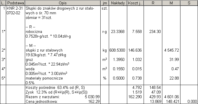 Rys.2. Pozycja kosztorysu z rys.1. po zmianie formuły