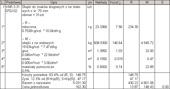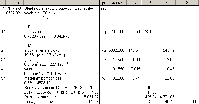 Nj - narzuty wyliczone na jednostkę obmiaru pozycji (np. Kpj+Zj),