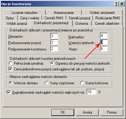 Rys.3. Określenie dokładności prezentacji wartości jednostkowych