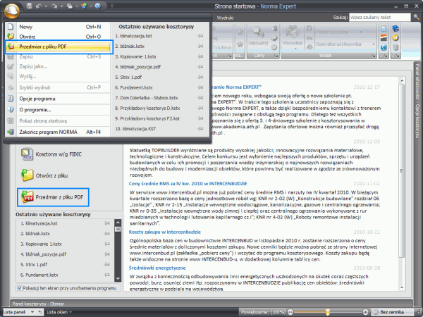 W ostatnim czasie format ten stał się popularną formą przekazywania dokumentacji, na przykład w przetargach. O ile zapis przedmiarów / obmiarów w formacie PDF jest sprawą łatwą, o tyle czynność odwrotna stanowi nie lada wyzwanie dla programistów. Problemy natury technicznej spowodowały, że nasi użytkownicy dość długo musieli czekać na opcję importu przedmiarów z plików PDF, ale w najnowszej wersji Normy PRO 4.33 i Normy EXPERT 5.1.401 taka funkcja jest już dostępna.