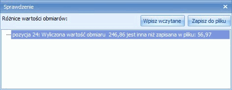 W trakcie importu może się również pojawić okno wskazujące rozbieżności między wartościami wczytanymi z pliku, a wyliczonymi przez Normę. Rozbieżności będą się pojawiać wtedy, kiedy program nie będzie potrafił zinterpretować jakiegoś elementu w wyrażeniu przedmiarowym, np. jakiejś zmiennej. Niestety, jak pokazuje praktyka, przedmiary w kosztorysach mogą być naprawdę bardzo skomplikowane i to co dla człowieka jest czynnością prostą, dla maszyny jest zadaniem nie do rozwiązania.