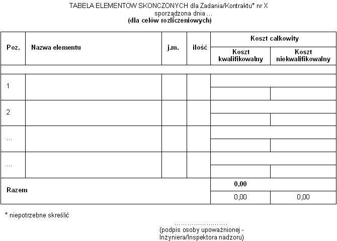 Dla robót dodatkowych i zamiennych zalecono sporządzać odrębne TES i „Protokoły odbioru elementów” i załączać je jako odrębne elementy do wniosku o płatność.