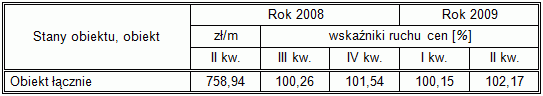 natomiast cenę 1 m2 p.u. tego budynku w II kwartale 2009 oblicza się jako iloczyn: