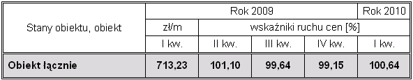 natomiast cenę 1 m2 p.u. tego budynku w I kwartale 2010 oblicza się jako iloczyn: