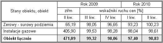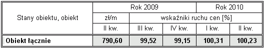 Oznacza to, że w II kwartale 2010 średnia cena budynku wielorodzinnego stanowi jedynie 96,52 % ceny budynku notowanej w II kwartale 2009.